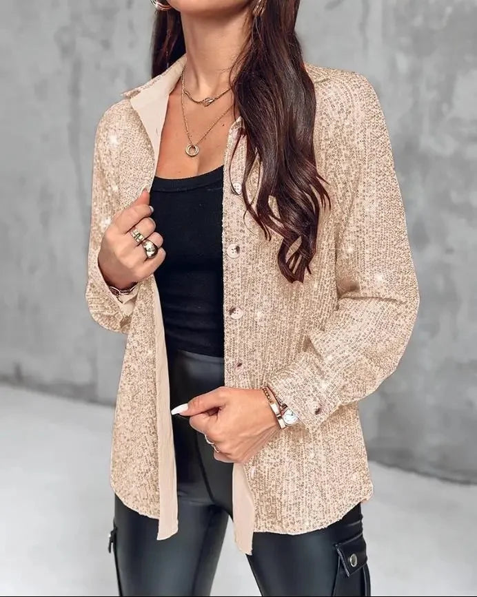 Introducing the "Silk Road Sparkle" Overcoat: the Long Shirt that celebrates the fusion of styles. This piece is the perfect blend of structured elegance (Turn-Down Collar) with Chic European/American influence. The highlight is the stunning Sequin Decoration on the fabric, transforming this lightweight Full Sleeve coat into an item of instant glamour. It is your new All-Match Spring piece ready to shine.