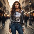 Are you looking for a top that is truly unique, blending sparkle, texture, and a sensual touch, yet doesn't sacrifice comfort or versatility for various occasions? Statement pieces are often limited, and comfortable ones lack impact. You need a top that combines casual elegance with an innovative design (Patchwork), a soft and loose fit, and the power of sequins for commuting and parties.