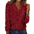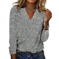 Introducing the "Soft Light" Top: the answer to chic versatility. Developed with high-quality Polyester Fiber (96%+), this pullover is surprisingly soft, stretchy, and skin-friendly. Its V-Neck design and Fine Sequins offer an immediate sophisticated touch that is perfect for the Commute style, yet sparkly enough for clubs and parties. It is the fusion of casual comfort and elegant shine.