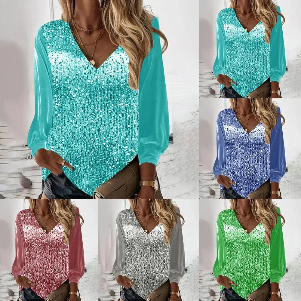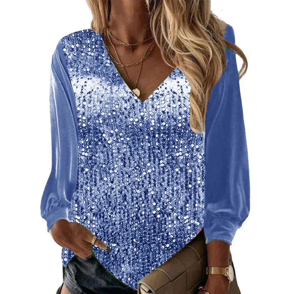 Women's Elegant Blouses Long Sleeve Tops Blouse Casual Shirts & Blouses Daily Long Sleeved Loose Regular Sequin Comfy Shirt Top